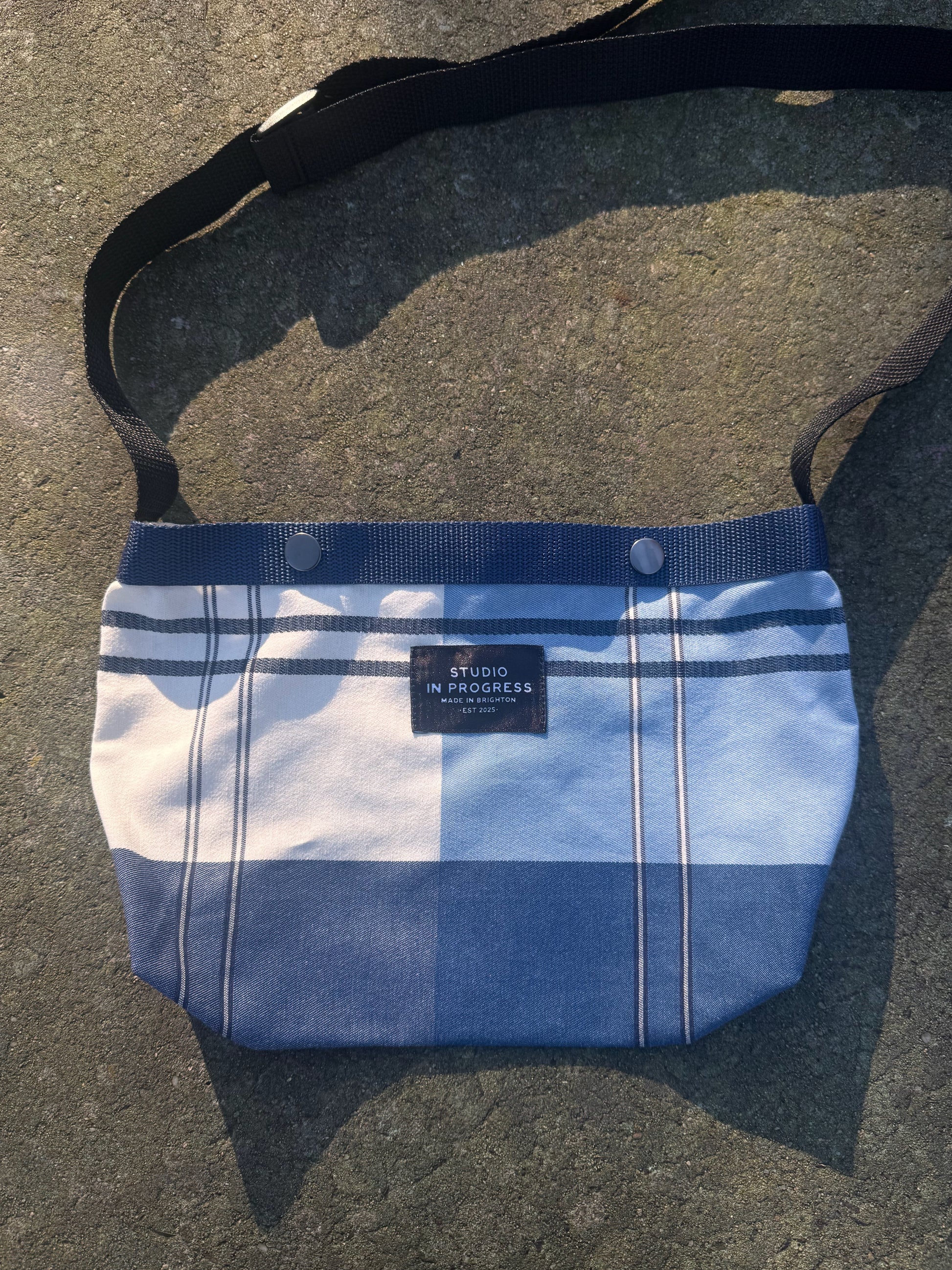 A special edition market bag, measuring 16cm wide by 20cm tall, snap popper closure and an adjustable strap from approx 60cm -100cm. A simple design, just big enough for your daily essentials. Made from repurposed curtains.